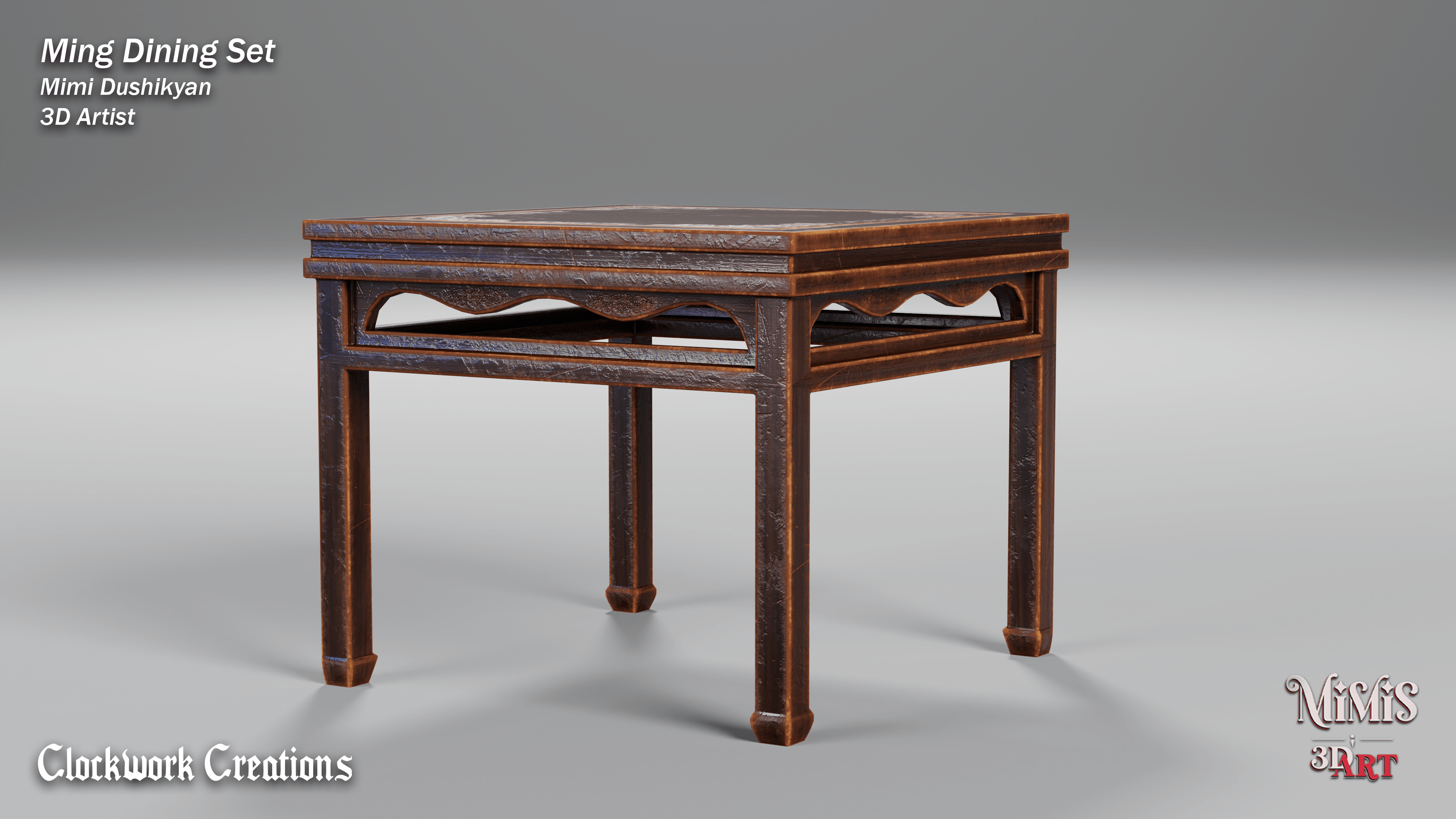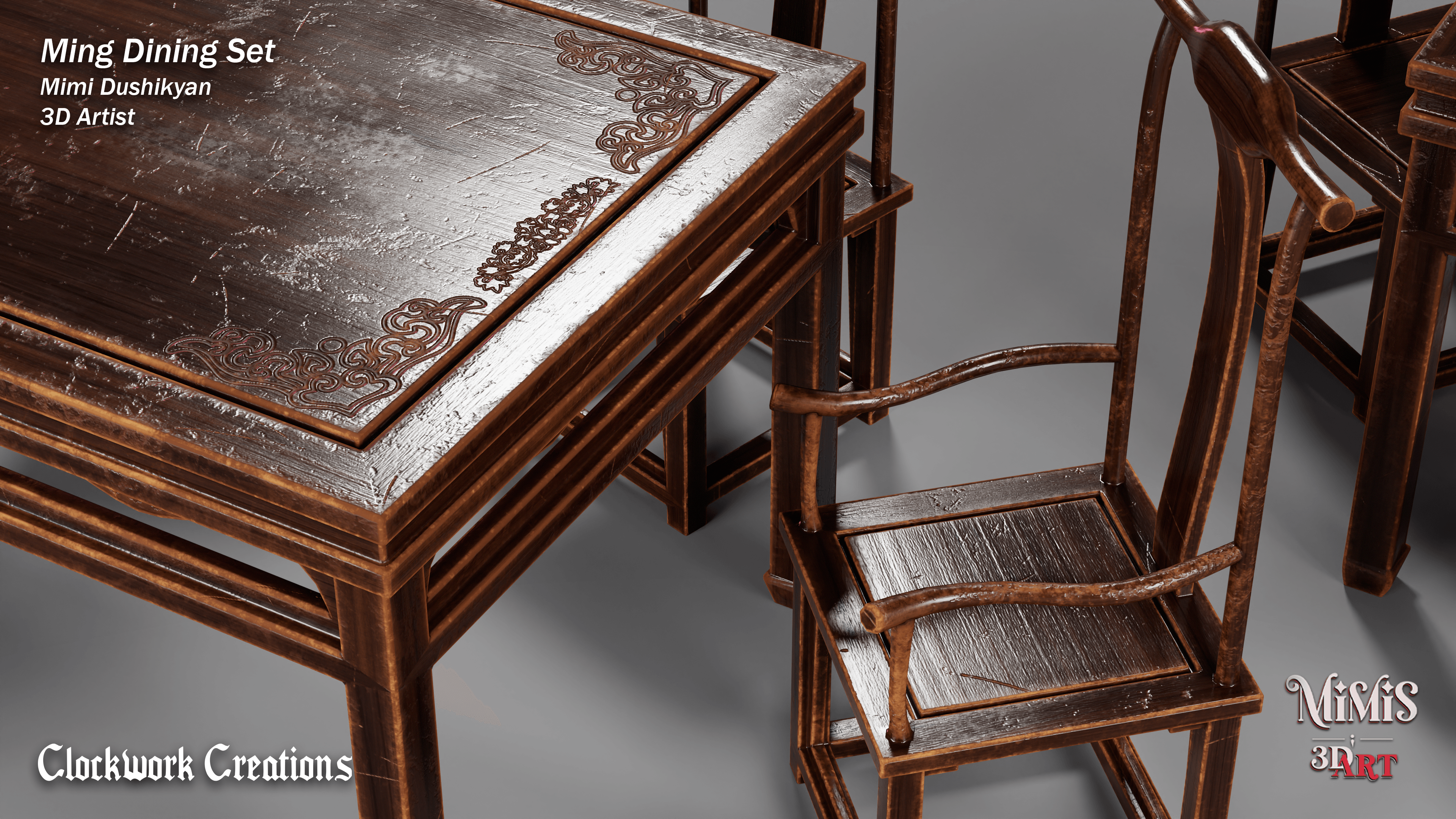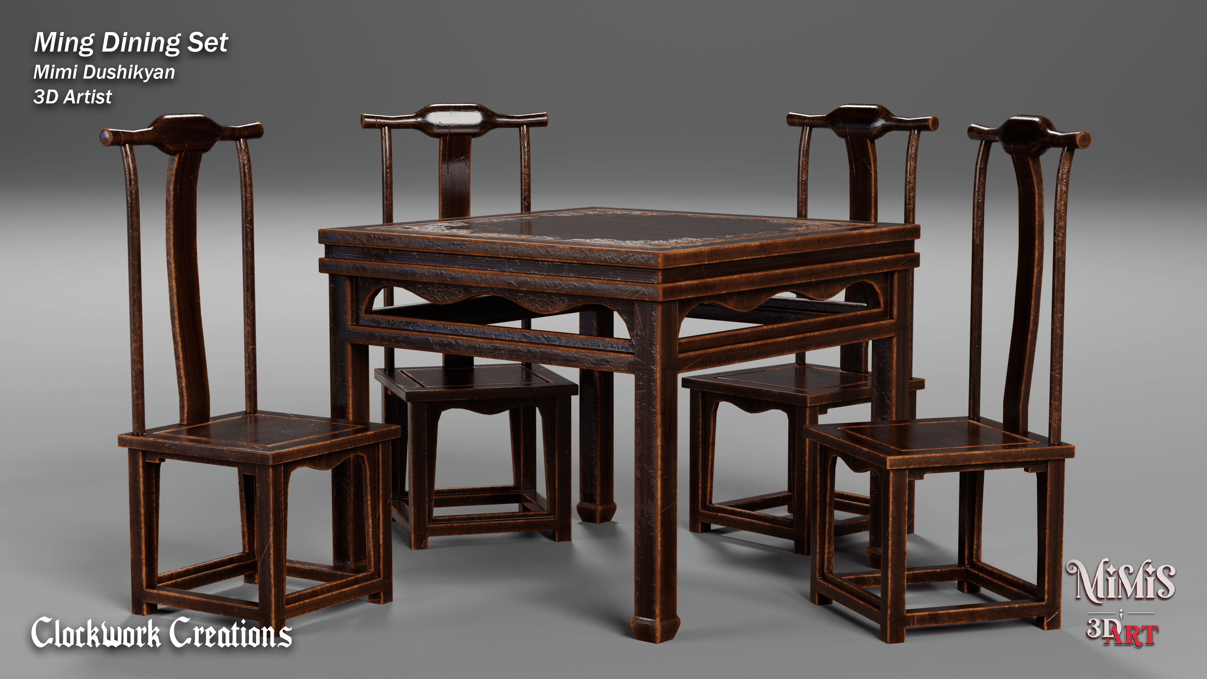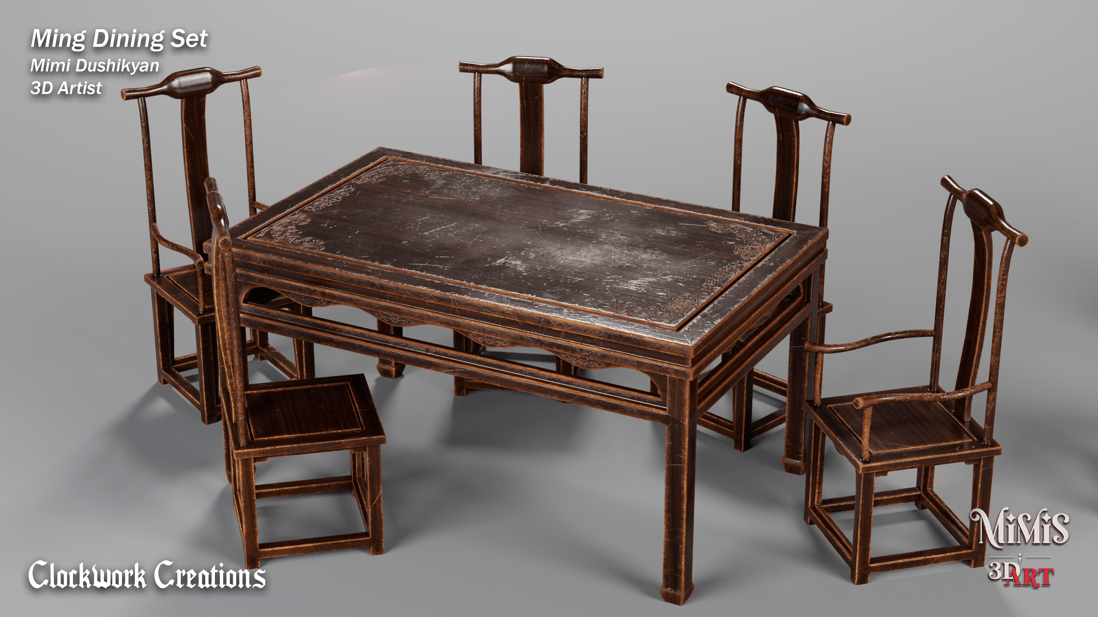 Ming Dining set is based off of existing furniture available online, recreated in 3D with my own approach on textures.