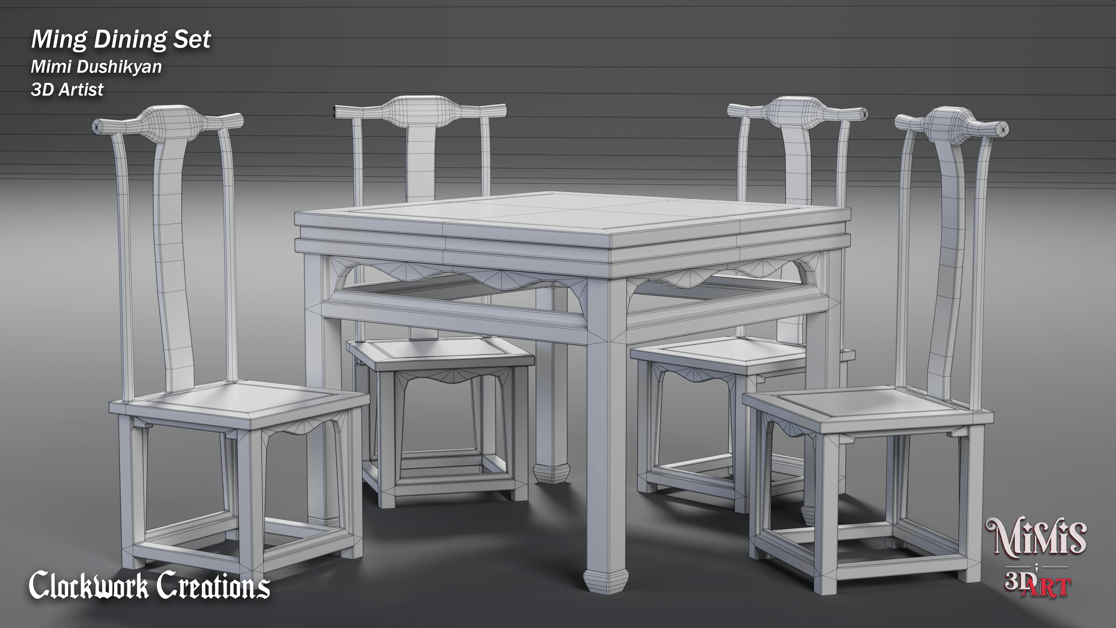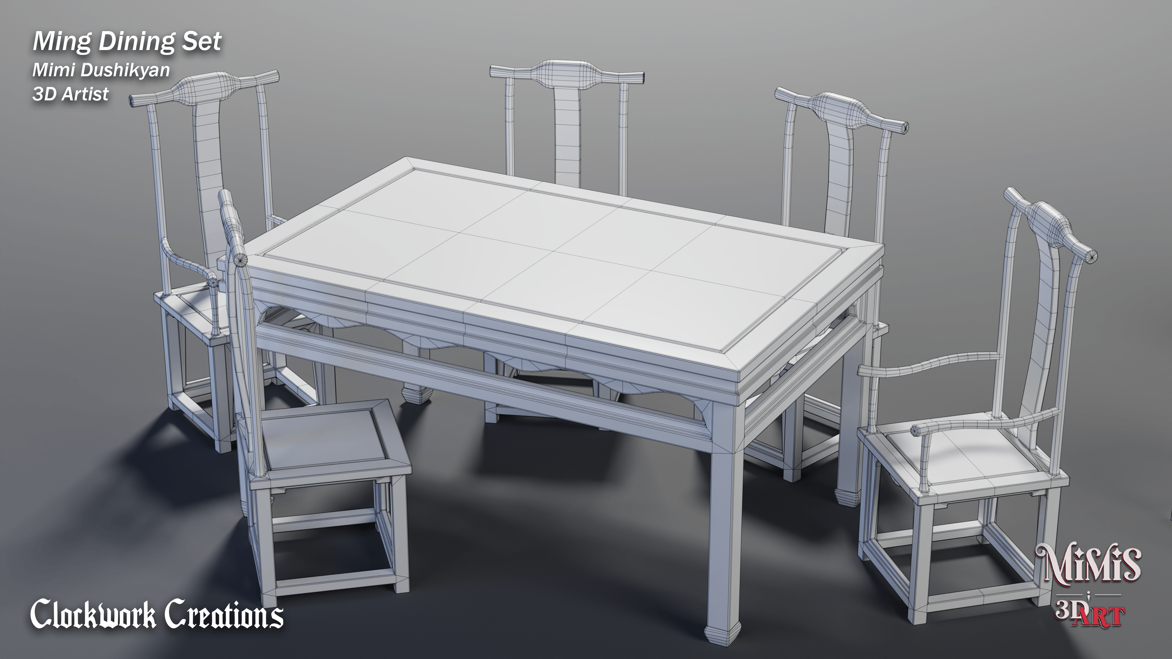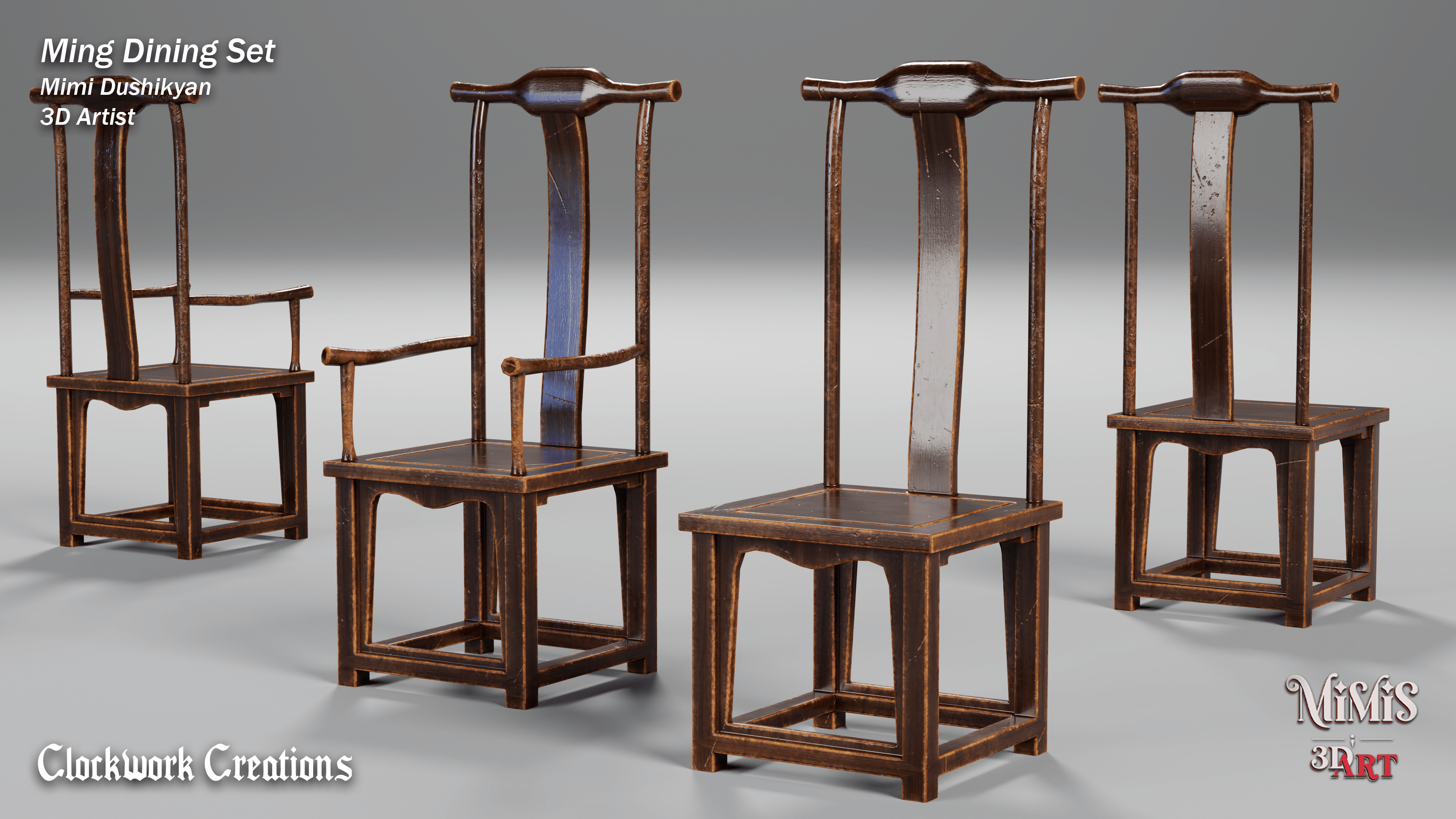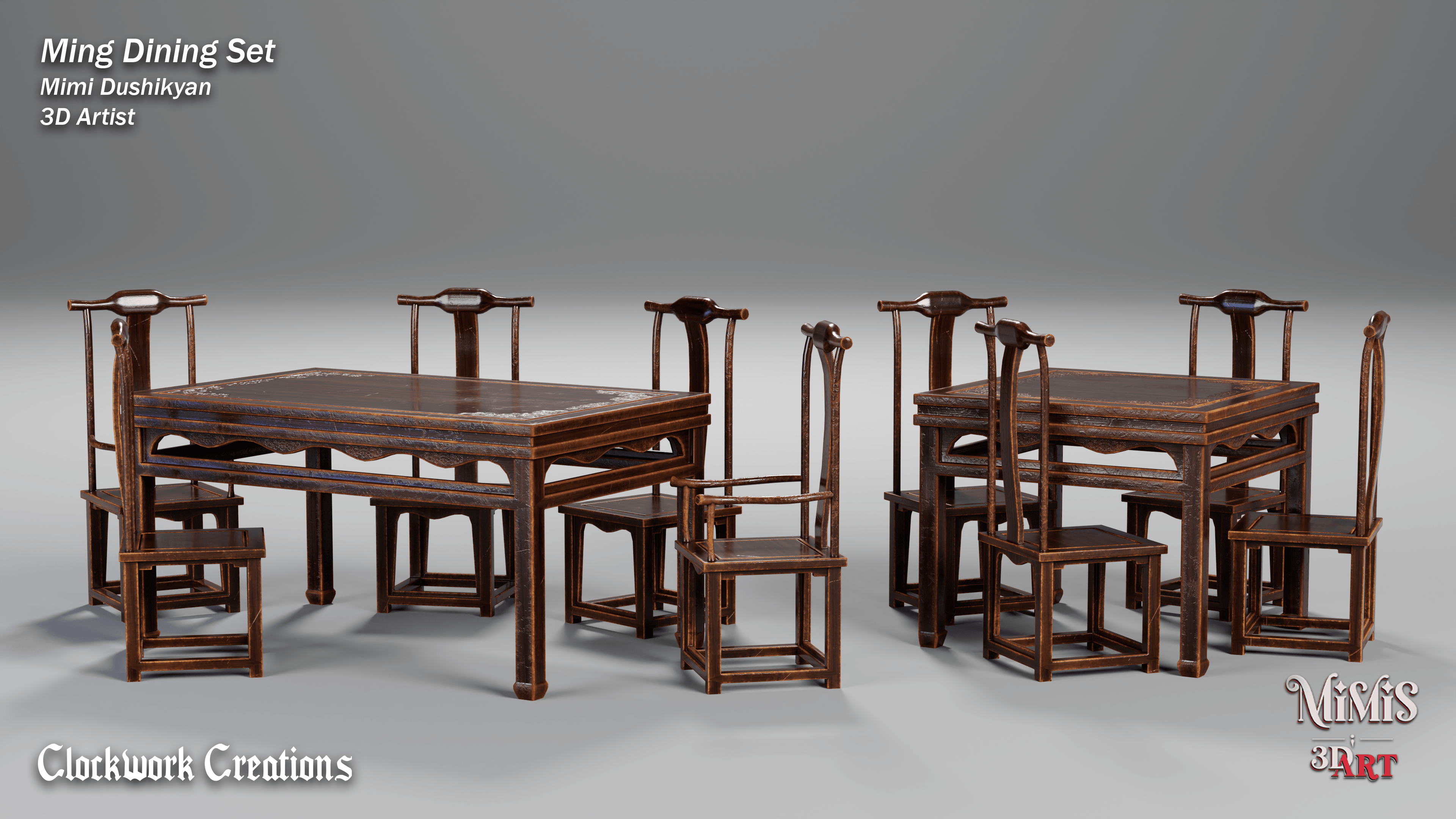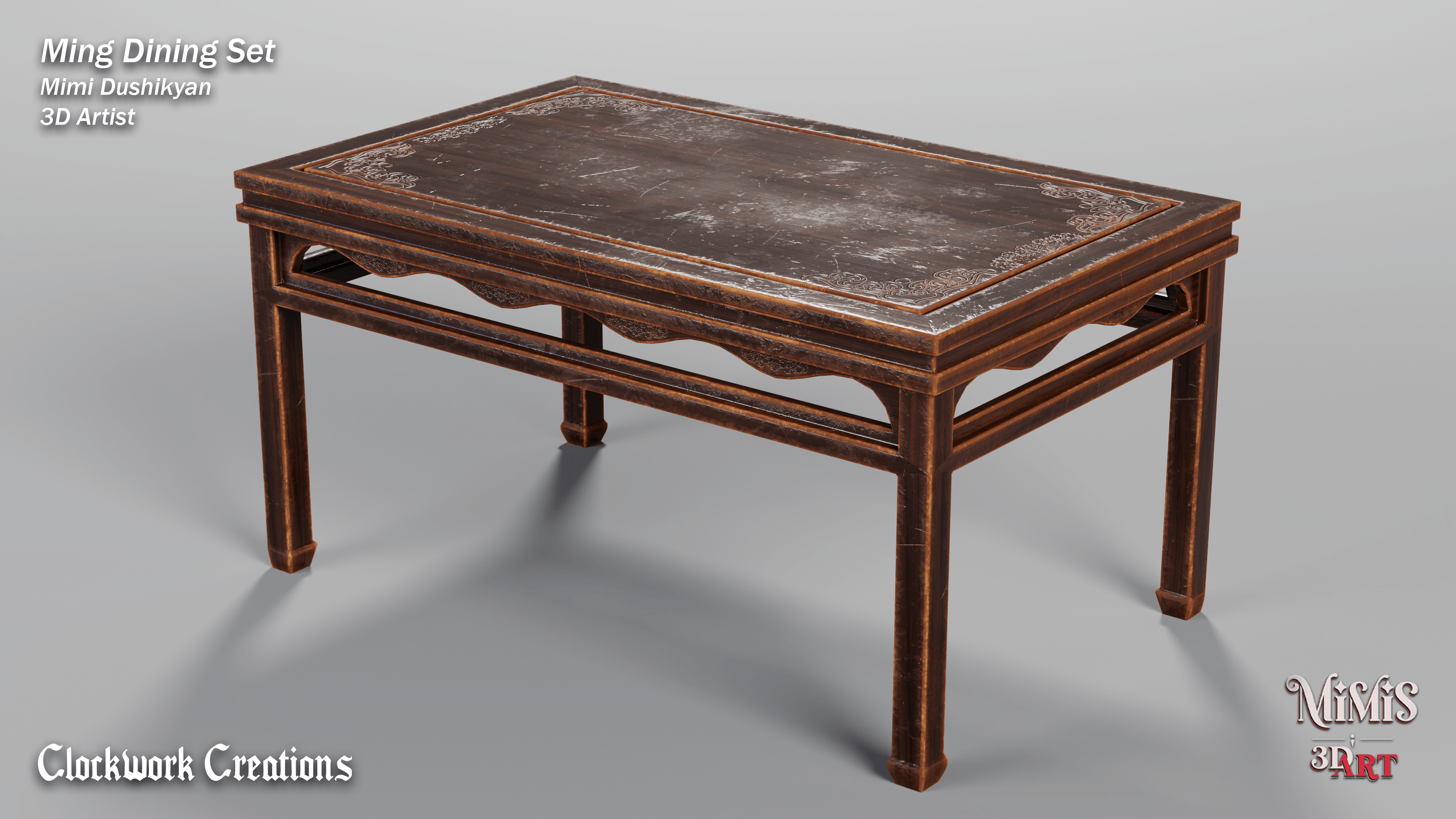 Ming Dining set is based off of existing furniture available online, recreated in 3D with my own approach on textures.